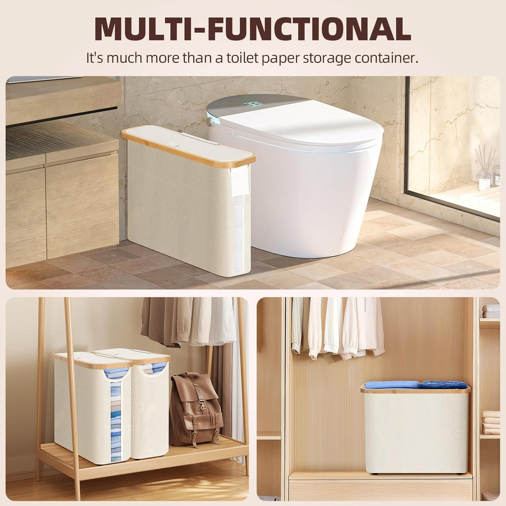 CARLA HOME 2 Pack Toilet Paper Storage Basket Holds Up to 12 Rolls with Bamboo Lid and Handle for RV Closet (White)