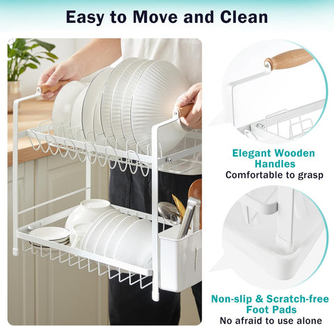 - LARGE 2-TIER DESIGN FOR MAXIMUM STORAGE: This spacious dish drying rack offers vertical organization with upper and lower tiers to hold plates, bowls, mugs, and more — ideal for families or anyone needing extra drying space.