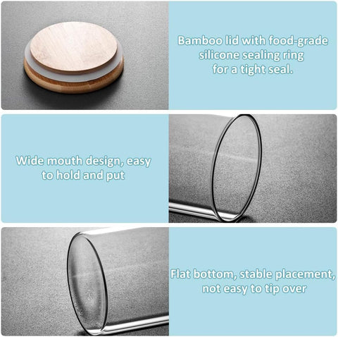 • AIRTIGHT BAMBOO LIDS: Each container features a natural bamboo lid with a food-grade silicone seal to lock in freshness and prevent moisture. Ideal for keeping dry ingredients like flour, cereal, and sugar crisp and ready to use.