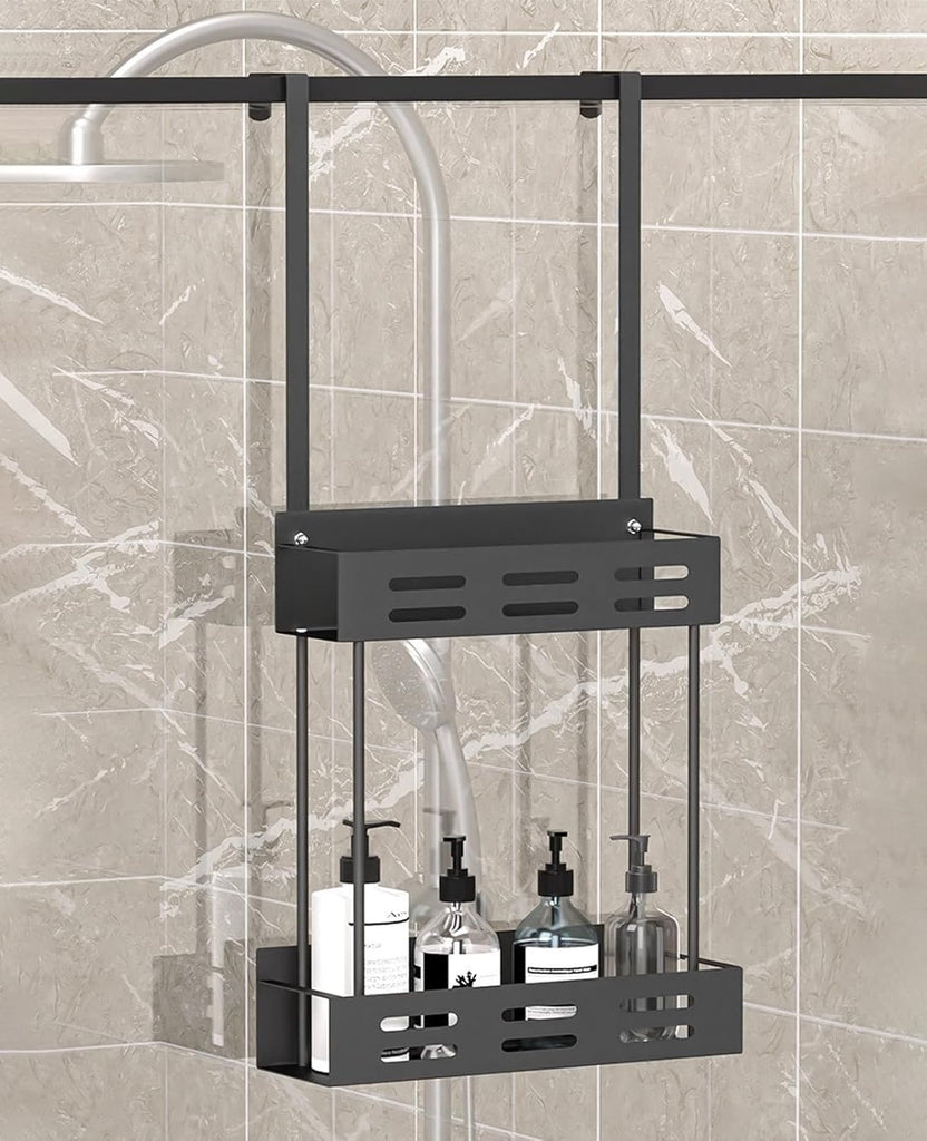 - SPACIOUS & SPACE-SAVING DESIGN: Measuring 62 x 30 x 5 cm, this 2-tier over-the-door shower caddy maximizes vertical storage while keeping countertops clear. Deep baskets easily hold shampoo, soap, lotion, and other daily essentials.