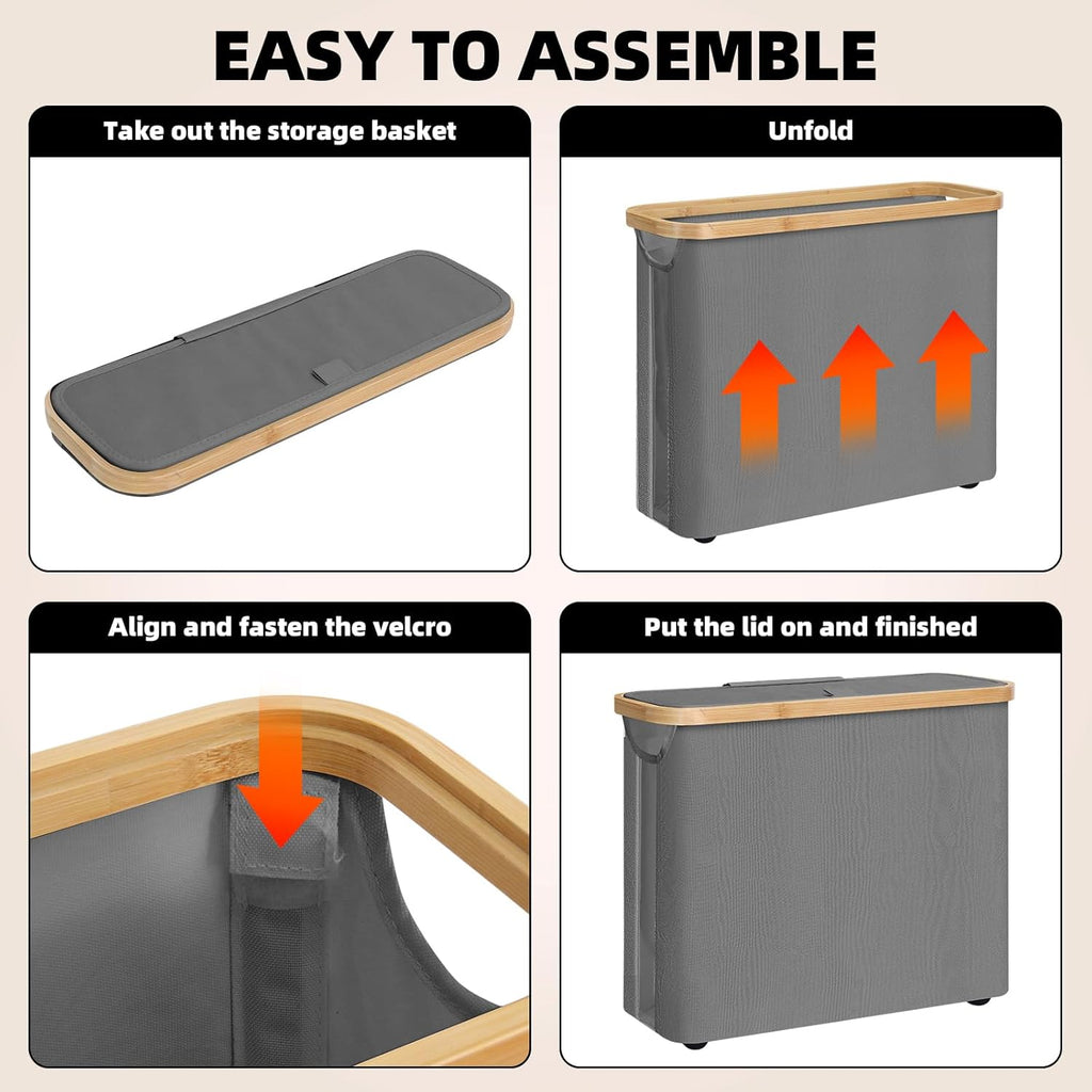 - BAMBOO LID & BUILT-IN HANDLES: A magnetic bamboo lid keeps contents concealed and protected from dust, while the integrated side handles allow for easy transport from room to room.