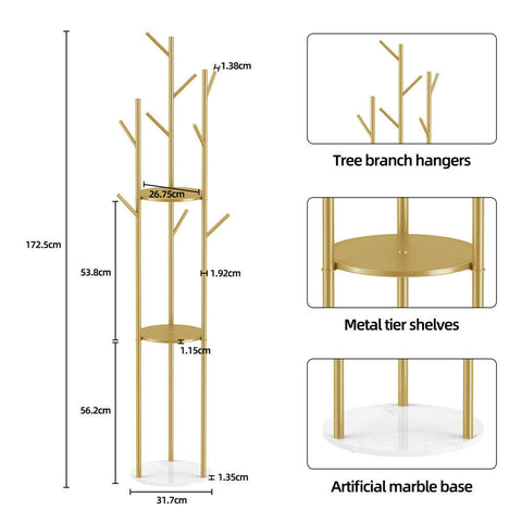- Elegant Design & Durable Construction: Enhance your home or office decor with this coat rack's modern tall tree design featuring a golden iron frame and an artificial marble base, ensuring stability and style that complements any interior.
