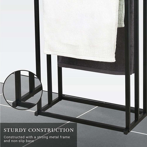 • Sturdy & Stylish Design: Crafted from high-quality steel with a sleek black finish, this towel rack not only offers durable support for your linens but also enhances your bathroom decor with its modern elegance.