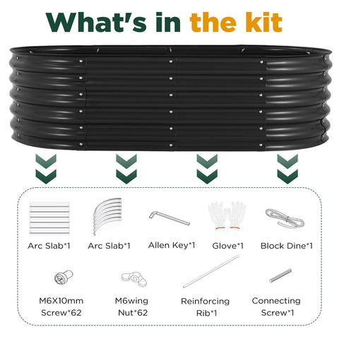 Oval Raised Garden Bed 160x80x42cm Galvanised Steel Planter