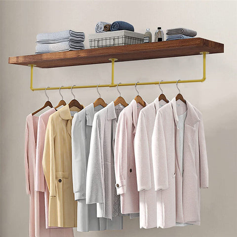 Vintage Iron Clothes Rail Gold Wall Mounted Garment Rack