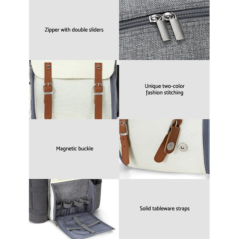 When the weather's warm, it's time to come out and play. Enjoy the sun and a fun family day out with the Alfresco 4-person Picnic Backpack. With everything you need for the perfect day out, you couldn't ask for a better picnic basket set. Made from water-resistant polyester ramie layered with heat-preserving aluminium film and thickened pearl cotton, this backpack will last the best family outings to come. With easy hand grip handles, adjustable padded shoulder straps and a retractable handle, you'll be happy with how easy it is to carry everything you need. The built-in thermally insulated cooler bag has the dual function of keeping hot food hot and cold food cold for up to 4 hours, while specialized fastenings will fit enough cutlery and crockery for the whole family. It has a zippered lid for easy access to drinks, made even easier with a 2-in-1 wine bottle opener and cheese knife. Let's not forget, the easy-to-clean, spacious and convenient picnic blanket. A picnic set that comes with everything you need, ready to go? Look no further than Alfresco.