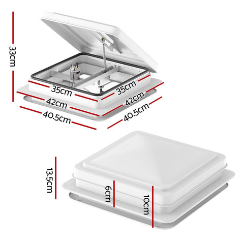 Need a breath of fresh air while travelling? The Weisshorn Caravan Vent is designed to enhance fresh air circulation in your caravan with ease. With its 45 degree wide-angle opening, it allows for maximum airflow, ensuring a comfortable and refreshing environment inside. Whether it's summer or winter, this vent is suitable for use in all seasons and weather conditions. One of the key features of our caravan vent is its low-noise operation, ensuring a peaceful and quiet atmosphere inside your caravan. Additionally, it effectively prevents insects from entering thanks to the stainless-steel flyscreen, providing you with a bug-free space to relax and enjoy your time. The single-speed reversible fan helps to keep moisture and odours out of your caravan. Furthermore, this vent is compatible with various roof thicknesses, making it versatile and easy to install. Upgrade your caravan with our caravan vent and experience improved air circulation and comfort like never before with the Weisshorn Caravan Vent.