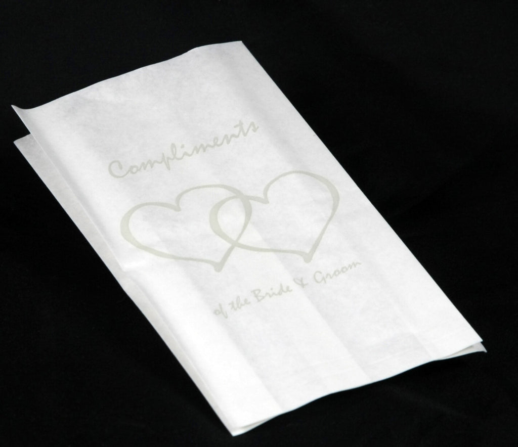 100 Pack Wedding Cake Bags Greaseproof Wax Paper Slice Take Home Favour Silver Heart n Message