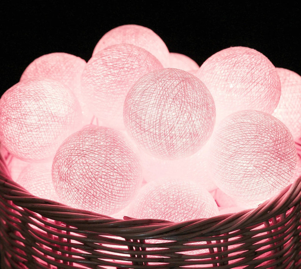 Pastel Pale Pink Cotton Ball String Fairy lights - 5cm diameter