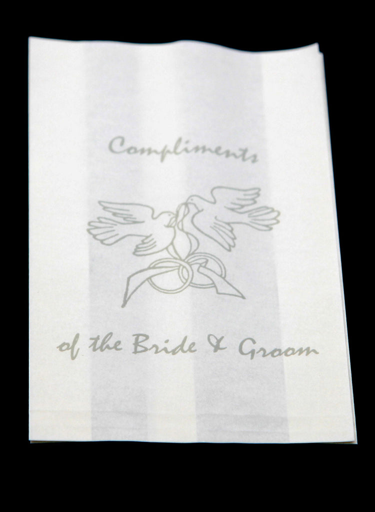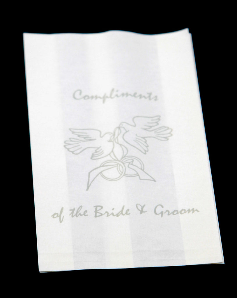 200 Pack Wedding Cake Bags Greaseproof Wax Paper Slice Take Home Favour Silver Doves