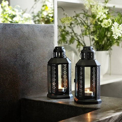 5 Pack of Black Metal Miner Lantern Tealight Candle Holder