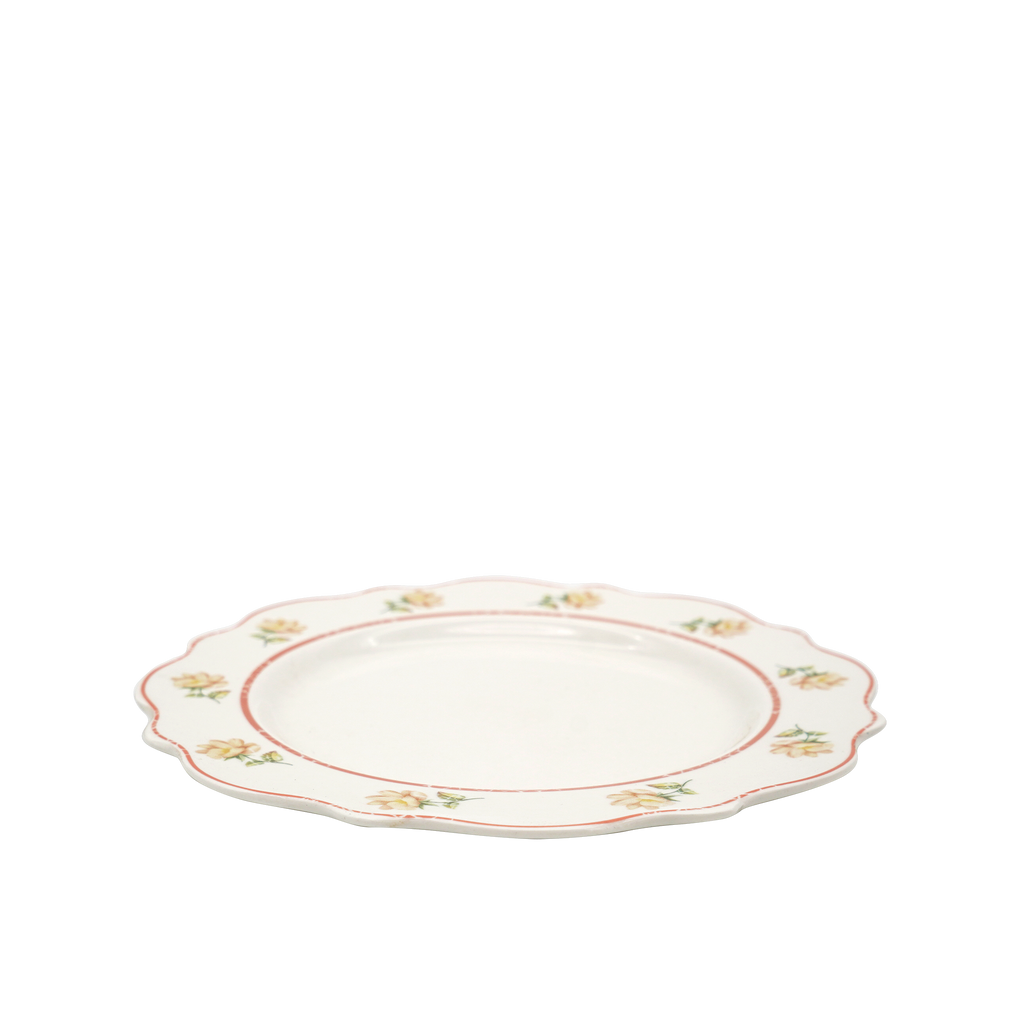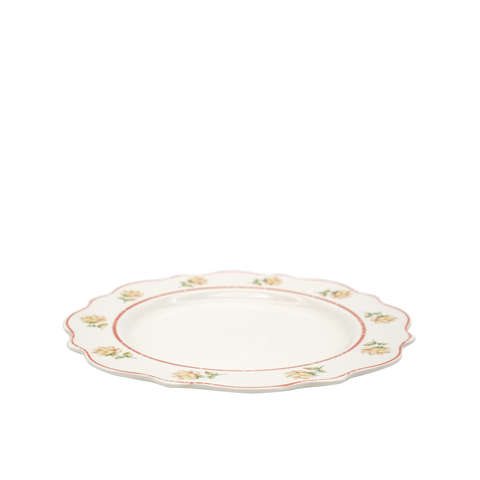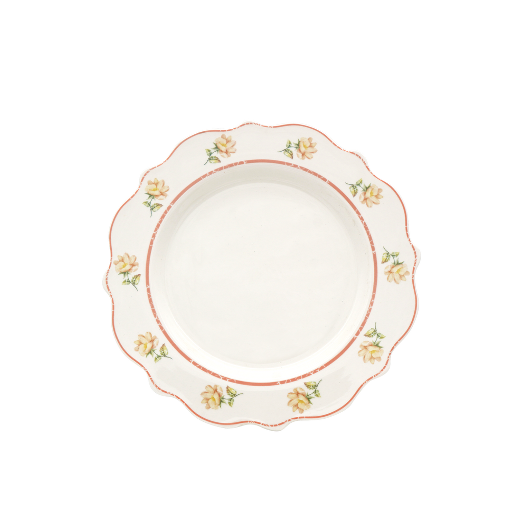 This Dinner Plate, measuring 20 cm in diameter, is crafted in a superb fine quality ceramic that has been beautifully worked and is a pristine Ivory white to better highlight the shades of the roses The finishing detail is in a burgundy colour.