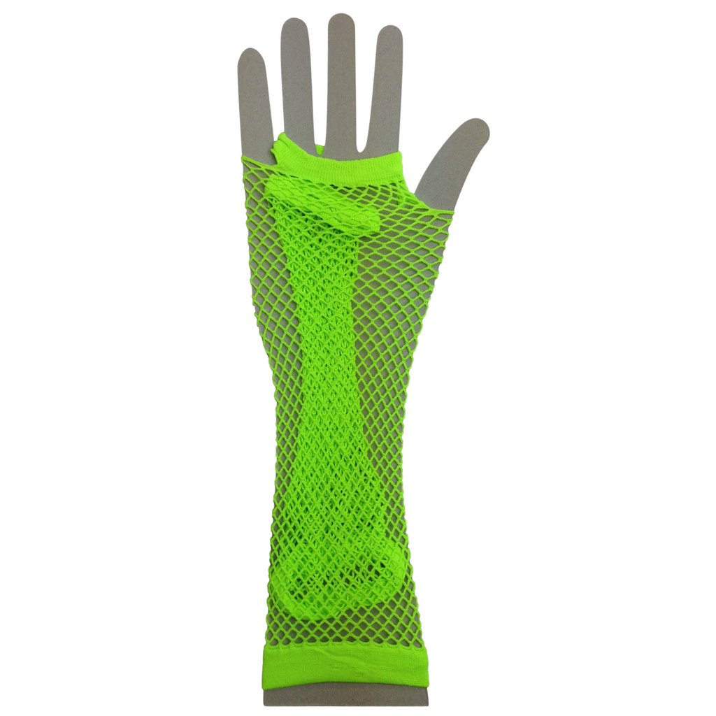 FISHNET GLOVES Fingerless Elbow Length 70s 80s Womens Costume Party Dance - Fluro Green - One Size