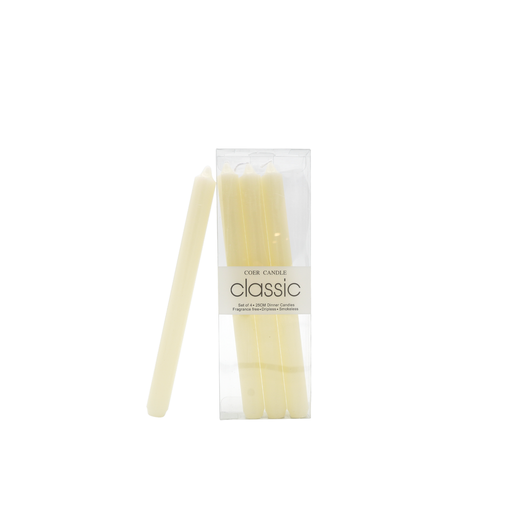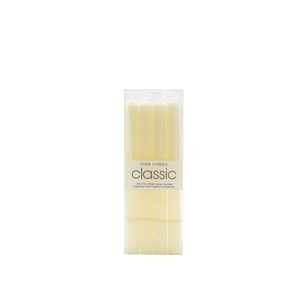 A dance of smooth lines, this classic candle with classic shapes, makes for a traditional decorative accent. Fashioned entirely of wax, this piece has a cylindrical shape with the choice of smooth texture or spiral pattern. This piece will be a stunning decorative accent with any candle holders on a console, side table, or bookshelf, diffusing an inviting glow into any room.