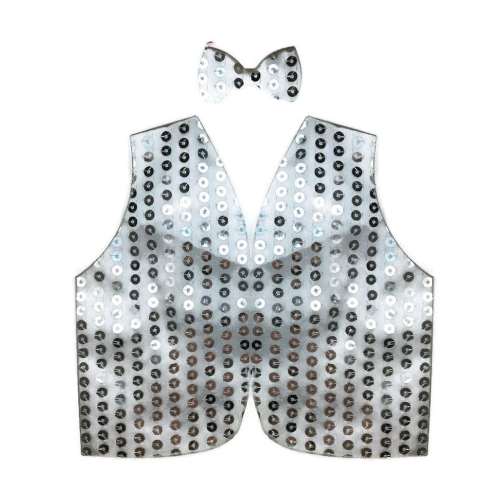 Mens SEQUIN VEST Dance Costume Party Coat Disco Accessory Sparkle Waistcoat - Silver