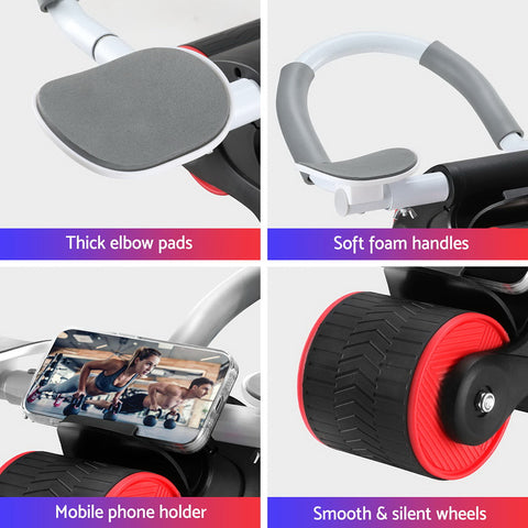 The Everfit Ab Roller is a must-have fitness tool for anyone looking to strengthen their core muscles. With its automatic rebound wheel, you can easily roll forward and backward without any effort, making your workout more efficient and effective. The stable triangular design ensures stability and balance, allowing you to focus on your form and get the most out of your abdominal exercises. Designed for comfort and safety, the ab roller features a thick foam grip that provides a secure and comfortable hold during your workout sessions. The multi-layer non-slip material on the wheel ensures a firm grip on any surface, preventing any accidental slips or slides. A convenient mobile phone holder can keep you entertained or help to monitor your fitness goals. Additionally, the smooth and silent roller allows for seamless and quiet movements, so you can exercise without disturbing others. Plus, its lightweight and portable design makes it easy to take with you wherever you go, so you can stay on track with your fitness goals no matter where you are. Exercise freely and easily with the Everfit Ab Roller.