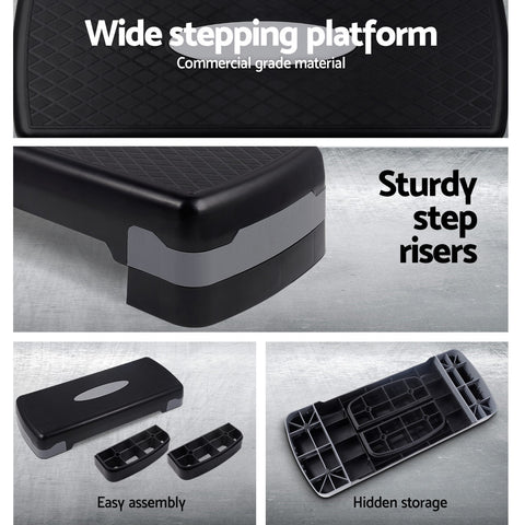 Have a professional workout at home with this commercial gym grade Aerobic Step. Just like the ones at your local gym, it features an advanced anti-slip surface and a wide stepping platform. You can adjust the height to the level that is most comfortable to train at – go at your own pace. It's excellent for improving cardiovascular fitness, and can also train your body coordination, burn fat and tone up your hips and thighs at the same time. It's incredibly easy to assemble; simply stack it up and you're ready to train! No need to book in at the gym anymore; now you can have a professional workout even when you're at home. Get your Aerobic Step today and start exercising like the pros!