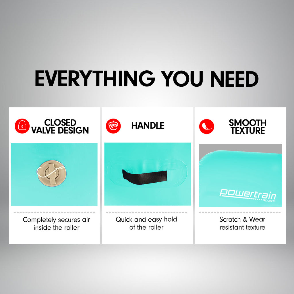 Powertrain Sports Inflatable Gymnastics Air Barrel Exercise Roller 120 x 75cm - Green