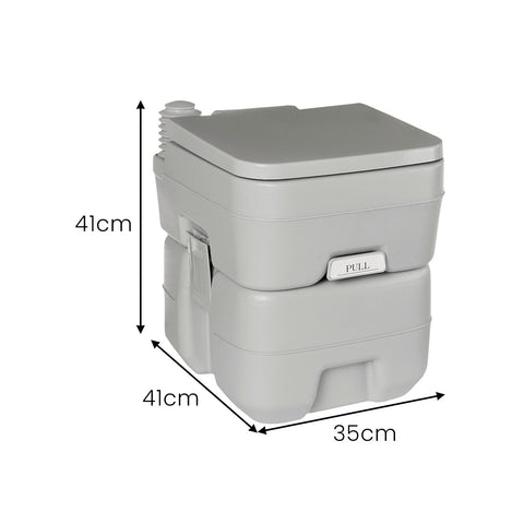 The user-friendly press flush pump lets you enjoy a hassle-free experience that rivals your home bathroom. Just press the pump, and let the powerful flushing mechanism do the rest. No need to worry about frequent emptying. This portable toilet boasts a generous 20-litre waste tank capacity, allowing for extended use without interruptions. Built to withstand the toughest outdoor conditions, this portable toilet is crafted with durable PE and ABS materials. Moreover, the double-sealed drain valve ensures a secure and odour-free operation, keeping any unwanted smells at bay.