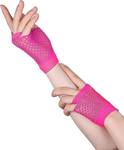 1 Pair FISHNET GLOVES Fingerless Wrist Length 70s 80s Costume Party Dance Accessory