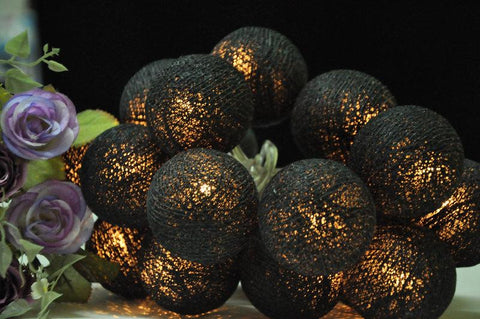 Black Cotton Ball String Fairy lights - 5cm diameter