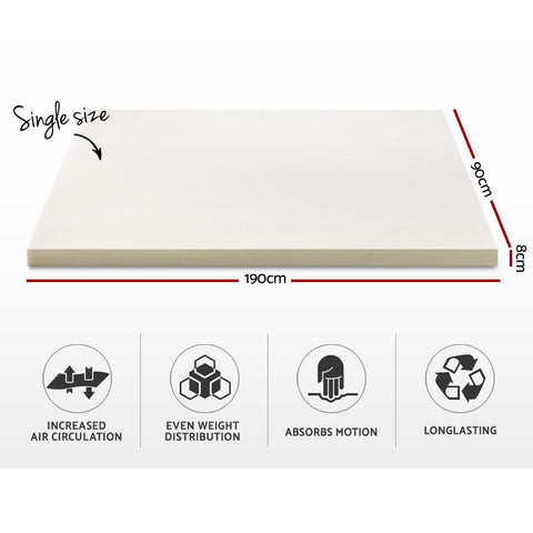 Turn your old mattress into a luxurious one with a Giselle Bedding Mattress Topper. With a high-density 100% Visco elastic foam filling, the Topper provides a lofty cushion of softness. The highly breathable 8cm thick Topper is also designed to shape according to the contours of your body for an even weight distribution with over 1000 supporting points. Not least, the Topper is housed in a removable zipped jacquard knitting fabric cover for a premium look and appearance. Ready to be used right out of the package, simply place the topper on your mattress and it will provide you with a better sleeping surface and pure comfort throughout the night.