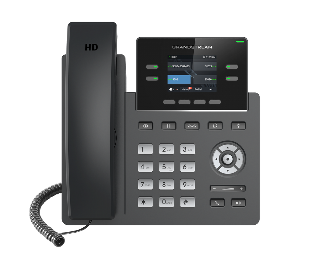 The GRP2612 is a powerful 4-line carrier-grade IP phone designed with zero-touch provisioning for mass deployment and easy management. It features a sleek design and a suite of next-generation features, 16 virtual multi-purpose keys (VPKs), a color LCD with swappable face plates for easy logo customization and more. The GRP series includes carrier-grade security features to provide enterprise-level security, including secure boot, dual firmware images and encrypted data storage. For cloud provisioning and centralized management, the GRP2612 is supported by Grandstream's Device Management System (GDMS), which provides a centralized interface to configure, provision, manage and monitor deployments of Grandstream endpoints. Built for the needs of desktop workers and designed for easy deployment by enterprises, service providers and other high-volume markets, the GRP2612 offers an easy-to-use and easy-todeploy voice endpoint.