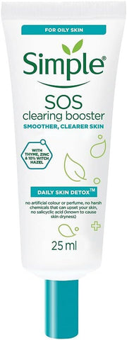- Introducing Simple Daily Skin Detox SOS Clearing Booster, a new super smart multi use format: ideal for controlling oily t zones or soothing localised blemishes