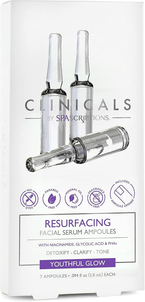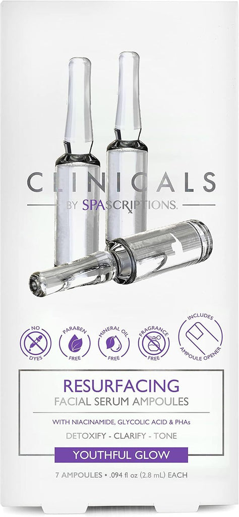 Spascriptions Clinicals Resurfacing Serum Ampoules 7-Pack 2.8ml Each Niacinamide Glycolic Acid PHAs Youthful Glow
