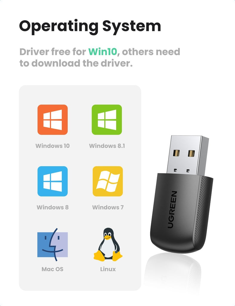UGREEN USB wifi adapter can support most Windows, macOS, and Linux systems, so if you have these devices, you can use the USB wifi dongle on them without any obstacles.