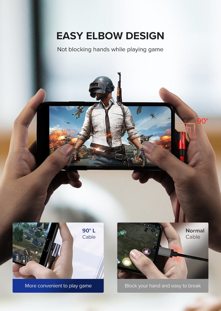 90 degree iPhone charger cable is perfect for unhindered gaming while charging. It's designed to avoid bending the cable, protect the 8-pin connector and cable exterior, increase the lifespan. Extensively compatible with iPhone 14 Pro Max/14 Plus/13/12/11/XS/ XR/ X/ 8 Plus/ 7 Plus/ 6s Plus/ 6 Plus/ 5S/ 5C/ iPad Air/ iPad mini/ iPad Pro/ iPod Touch/ iPod nano 7th gen, and more 8-pin iOS devices. (Max thickness of phone case allowed is 2mm.)