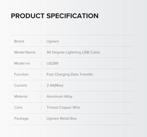 UGREEN 60521 USB-A to 8-pin 90 Degree Angel Cable 1M
