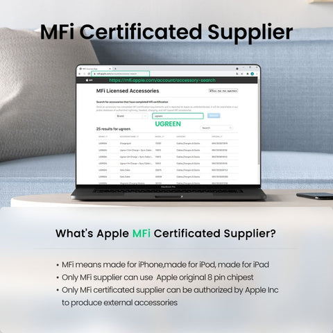 Support data transfer and charging; Support speed up to 480Mbps; Backward compatible with USB 1.1; MFI certified, with built-in chipset verified by Apple company. Compatible with iPhone, iPad Air, iPad mini / mini2, iPad 4th generation, iPod 5th generation, and iPod nano 7th generation. Connector: USB-C Male× 1; iPhone 8-pin Male× 1. With slim aluminum connector,just plug into your devices, no need to take off your device case.