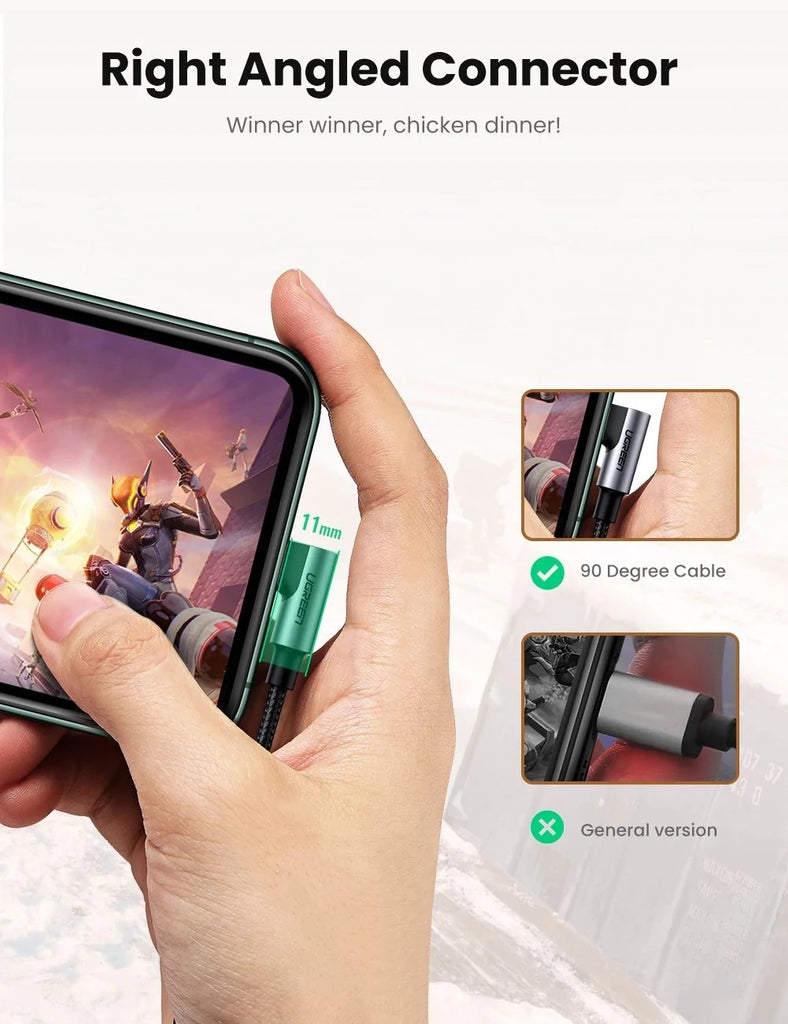 UGREEN 60763 90 Degree USB-C to iPhone 8-pin Cable 1M