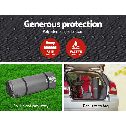As the name says it all, the water-resistant Mat self-inflates through two built-in valves in just 60 seconds, presenting you with a smooth sleeping surface amidst all types of terrain almost instantly. Made from high density 4cm thick polyurethane foam, the Mat is wrapped with polyester surface top and anti-slip polyester pongee bottom. That way, you lie on a smooth and comfortable surface with a mat that does not slip or move with your every turn while sleeping or shifting around.