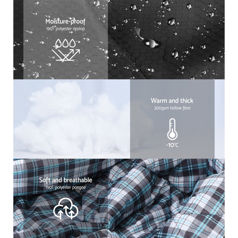 Weisshorn Sleeping Bag Double Pillow Thermal Camping Hiking Tent Grey -10°C